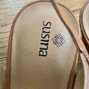 Susina Terra Leather Wedge Cognac Sandal Size 8.5