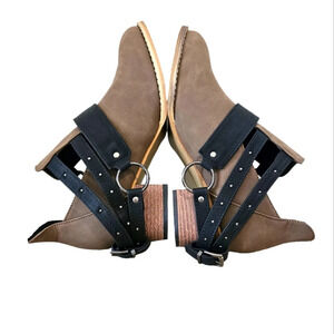 NWOB TINSTREE TAN & BLACK FAUX SUEDE ANKLE BOOTIES