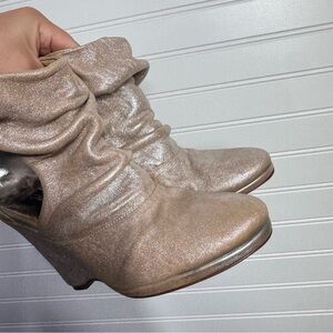 NWOB Tashkent by Cheyenne Beige Metallic Platform Wedges Booties Back Bow Sz 41