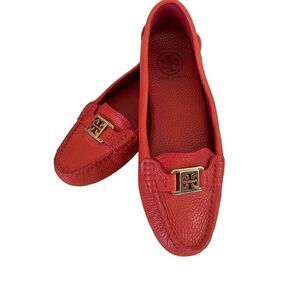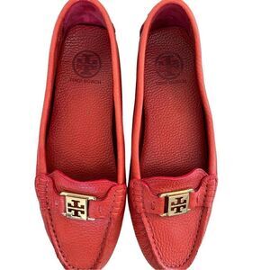 NWOB Tory Burch Kendrick Tumble Leather Orange Flats Loafers W/dustbag Women’s 8