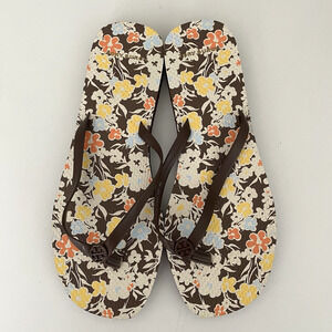 NWOB Tory Burch Soho Reverie Walnut Brown Floral Thin Flip Flops Sandal Flat 9