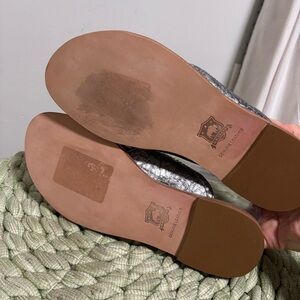 NWOB Trask Hurricane Crossover Metallic Silver Leather Slip On Flat Sandals
