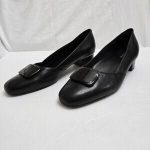 NEW Trotters Delse Black Leather Low Block Heel Pumps, Size 11 Comfort Shoe