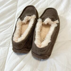 NWOB UGG Ansley Espresso Suede Shearling Moccasin Slippers Women’s Size 6