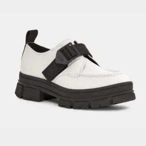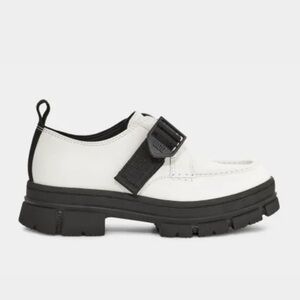New without box Ugg Ashton Shoe combat lug sole leather white with black loafers size 8.5.
