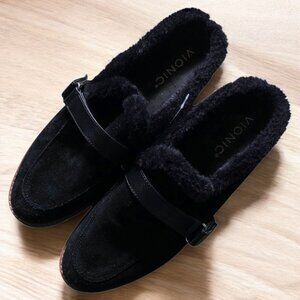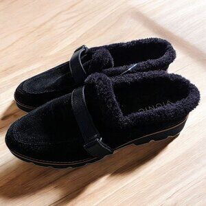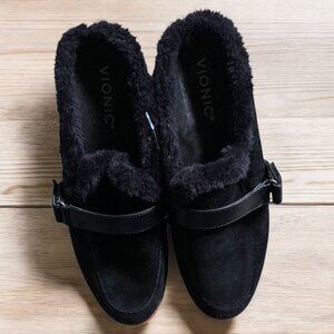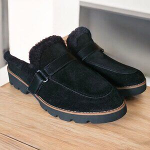 NWOB VIONIC ( ) KAILEN SLIP-ON Black Mule Shearling Suede Shoes