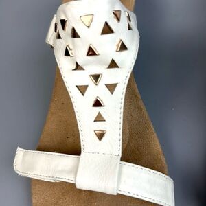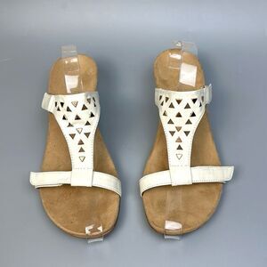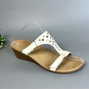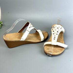 VIONIC Maggie Wedge Sandals White Patent Gold Studded Beach Comfort, adjustable straps.