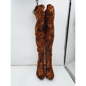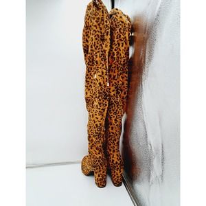 NWOB Vespose Thigh High Back Tie Leopard print soft upper 1/4 zip Boot 8.