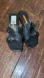 NWOB Via Spiga Wedge Sandals Criss Cross Buckle Detail Black