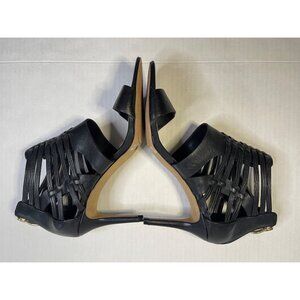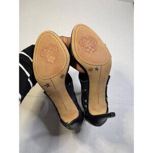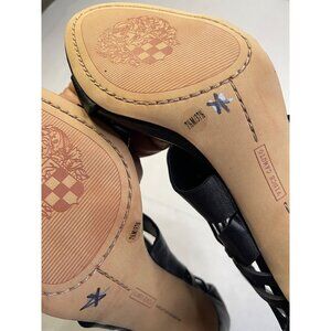 NWOB Vince Camuto Open Toe Zip Strappy Pump Heels Black Leather Shoes Women 7.5