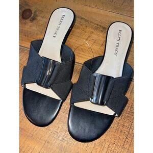 NWOB Womens Ellen Tracy Black Dressy Casual Open-Toe Sandals Stretch Size 8.5