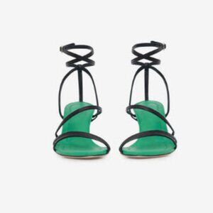 NWOB Womens Iro Black Green Open Pointy Toe Strap Sandal Leather Heels 37 US/6.5