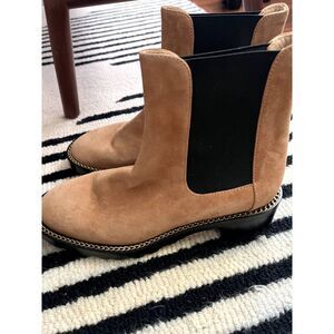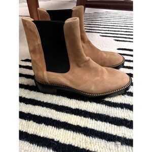 NWOB Womens Stuart Weitzman Kolbie Suede Chain Link Chelsea Boots Tan Size 5.5