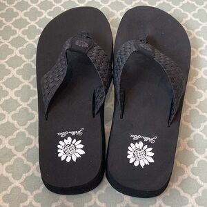 NWOB YellowBox Soleil Black Woven Metallic Sandals 8