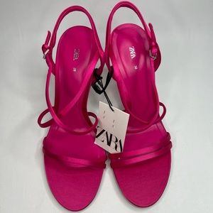 NWOB ZARA Fuchsia High Heel Sandals with Straps 1312/210/060 Size 38 US 8