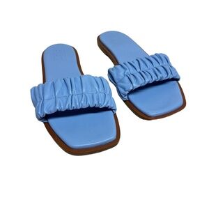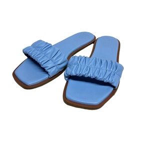 NWOB resouL Womens 41 Sandals Blue Slide Ruched Leather Square Toe Italian Beach