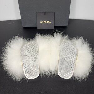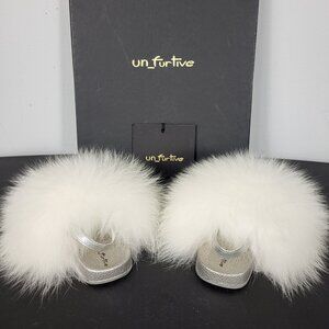 NWOB~$465~UN_FURTIVE~BABY~SZ 4.5/5~REAL WHITE FOX FUR SANDALS SHOES BOOTS