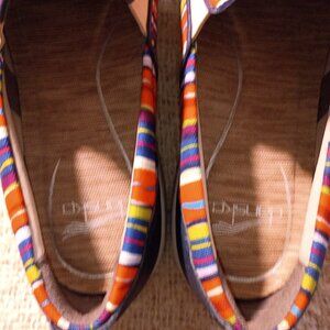 NWOB/ Dansko Belle Canvas Casual Comfortable, Fun Bright Multi Colors with Blue, Loafers with Arch Support. Women Size 42/11(These loafers run small(42) fits like Women size 11)