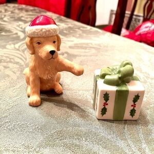 NWOB LENOX SANTA DOG WITH GIFT SALT & PEPPER SHAKERS 3.5” high