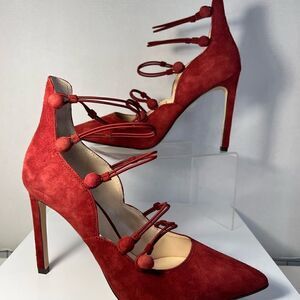 Be bold with the daring style of the Tennyson pointed toe pump from Nine West. Highlighted by its strappy detailing and scalloped topline, this stiletto is sure to add some depth to your dress looks.