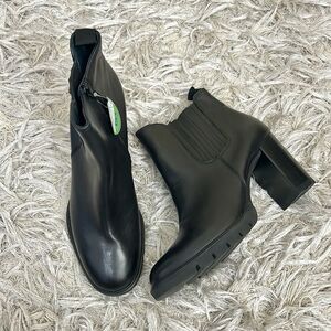 Paul Green Sahara Block Heel Chelsea Boots in Black Leather. Size UK 7/US 9.5, new without box. Retail $520.