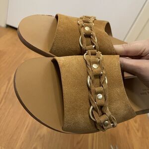 NWOB Rag & Bone Beau Suede cognac brown chain slip on sandals size 39 $328