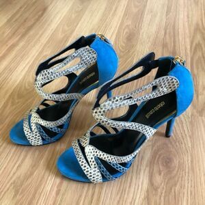 NWOB Roberto Cavalli Snakeskin Suede Stiletto Strappy Heels