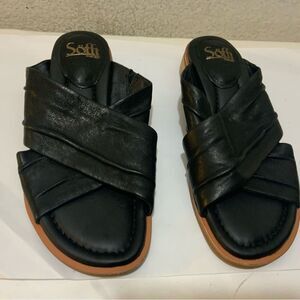 NWOB Sofft Fallon Womens Leather Slides Sandals With Comfort Footbed 7.5 M