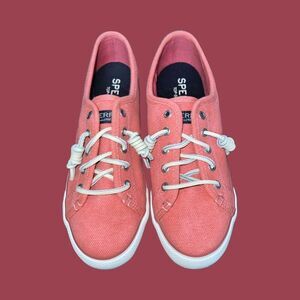 NWOB Sperry Women's Crest Vibe Linen Sneaker Washed Salmon Size 6.5