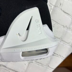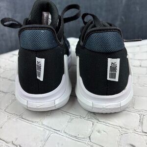 Stylish Nike sneakers for kids. Black upper with white accents. Comfortable and durable.