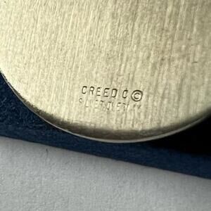 Approximately 1" round. Engraved on the back with "Creed Co / Silver Plated." New without tags - still on the backing.