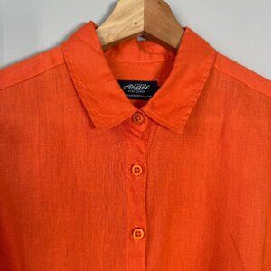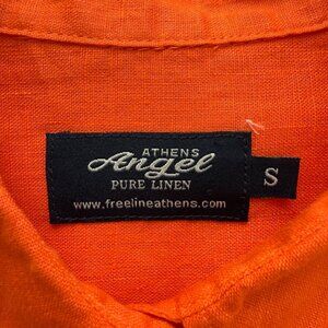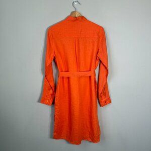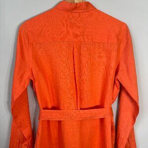 NWOT 100% Linen Button Up Shirt Dress Free Line Athens Women's Small Orange Chic