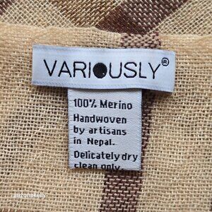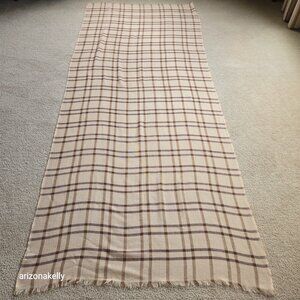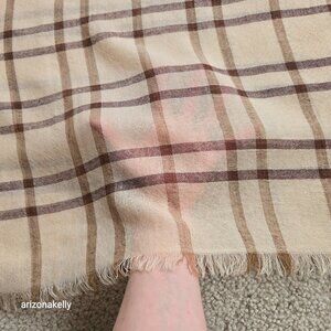 NWOT 100% Merino Wool Woven Tan Plaid Scarf Wrap Lightweight Variously
