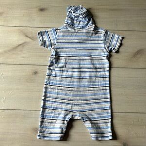 NWOT 100% Pima Cotton Feather Baby Hooded Striped Blue and White Kids Romper