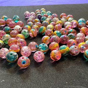 NWOT๐ 100 Round Glass Beads Hand Painted for Jewelry Making - Craft
