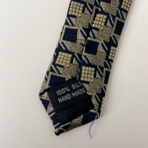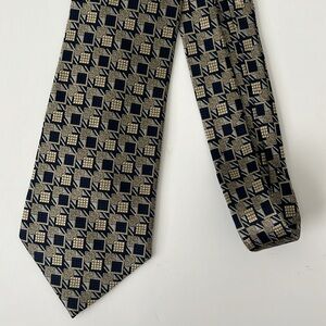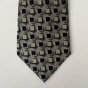 NWOT 100% Silk Men’s Gold and Navy Geometric Tie