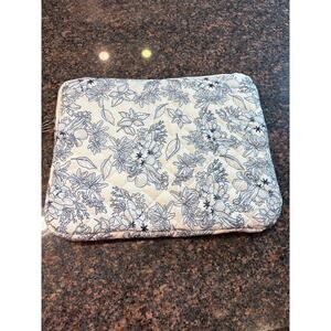 NWOT 13" Quilted laptop sleeve. White with blue floral print, two way zipper. Soft interior to keep your computer safe.
