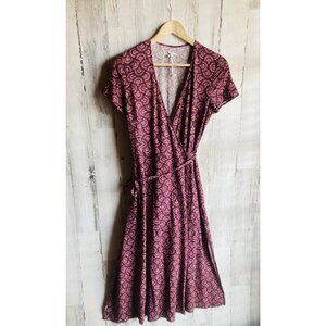 NWOT $138 Marine Layer Emlyn Midi Wrap Dress S Pink Black Print Preppy Casual