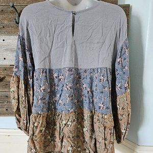 NWOT 143 Story Three Tone Long Sleeve Floral Top Sizes XS/S/M/2X/3X