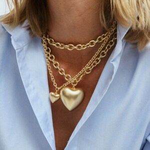 NWOT $155 Roxanne Assoulin The Puffy Heart Necklace in Gold