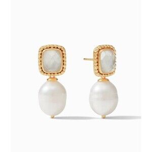 NWOT. $175 Julie Vos Earrings in Clear Crystal and Pearls