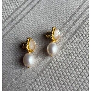 24K gold plate, mother of pearl, imported glass, freshwater pearls.