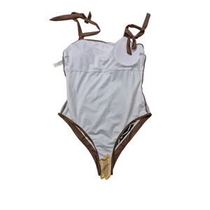 NWOT 1PC Bathing Suit+ Long Sarong Cover Up Set Brown/Gold Marble Sz XL