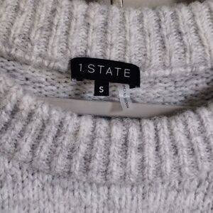 So soft this flattering sweater by 1. State is perfect for the season. Gray color block, slight puff sleeve. Size S.