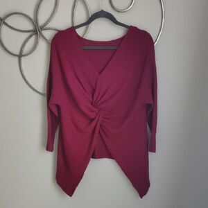 1.state like new, cozy and stylish dark red top. Enjoy comfort and elegance in this must-have piece. Size xs but oversized style.