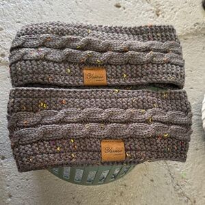 Cozy knit headbands with a speckled pattern. Features a stylish cable knit design. Perfect for keeping warm.