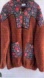 Cozy brown fleece jacket with floral patterned accents. Features a zip-up front and two pockets.