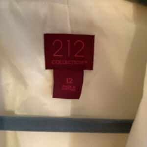 New without tags. 212 Collection Brand Women’a gorgeous, fully lined single button blazer is size 12. Polyester, spadex and rayon blend this blazer reads as white or eggshell Two working front pockets. Center back length measurement of 25 3/4”. Sleeve length of 24 2/2”. Gorgeous high end fabric is dry clean only on this beauty. Showing photos w of front and back sides along with fiber contents and care information,