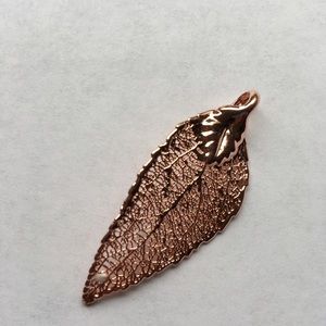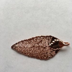 NWOT this is beautiful rose gold real leaf and hand paint the surface with a Cooper based paint. Once the natural surface id's coated with the copper metal, then they are able to electro form 24k gold into the leaf. The result is a beautiful leaf that is preserved in pure 24k gold. It approx. 1 1/2 inch long.
