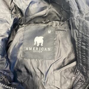 This is a store return or a display. It should be washed before wearing. Elevate your winter wardrobe with this stylish American Stitch puffer jacket. Crafted from high-quality microfiber fabric, this jacket promises to keep you warm and comfortable in the cold weather. The jacket features a classic black color with a sleek and modern design that is perfect for any occasion.